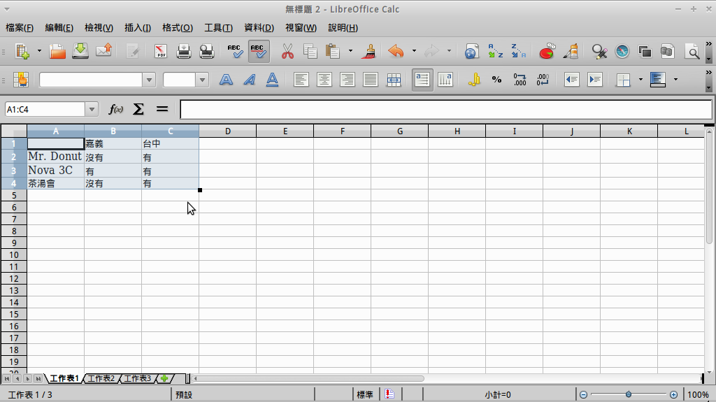By LibreOffice 正體中文社群, 11 四月, 2012 有時候我們已經在 Writer 中建立了表格資料,想要直接在 Calc 中使用。但我們如果只用選取、Ctrl+C、切換至 Calc、Ctrl+V 卻會不如預期,LibreOffice 似乎把整格表格當成一個物件貼上了!而且還只顯示部份內容,其他則被藏住了。那要怎麼達到預期效果呢?請不要用 Ctrl+V 貼上,而是按下工具列中「貼上圖示」右方的下拉箭頭,選擇「HTML(超文字標記語言)」。匯入的語言選取「自動」,並按下「確定」。接著就能成功看到 Writer 中的表格了。 LibreOffice 正體中文文件