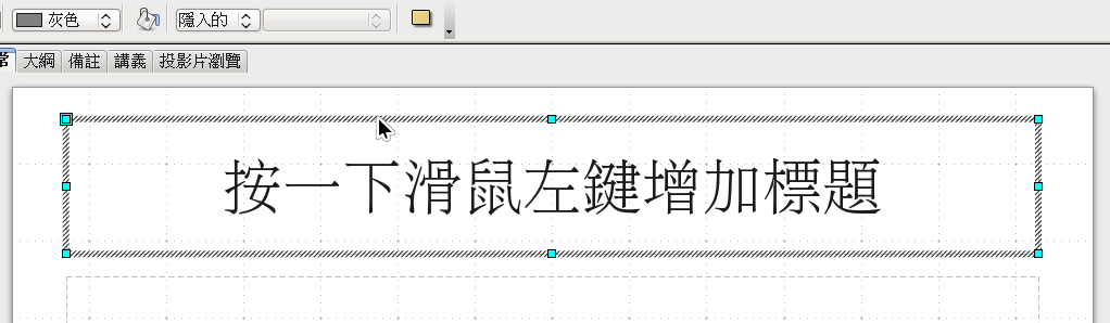 至於「已輸入文字」的文字方塊為「隱入」模式,因此要先點選到輸入文字或已輸入文字的地方才能選取,接著再點選外框兩次才能進入編輯模式,才會顯現填色工具列。