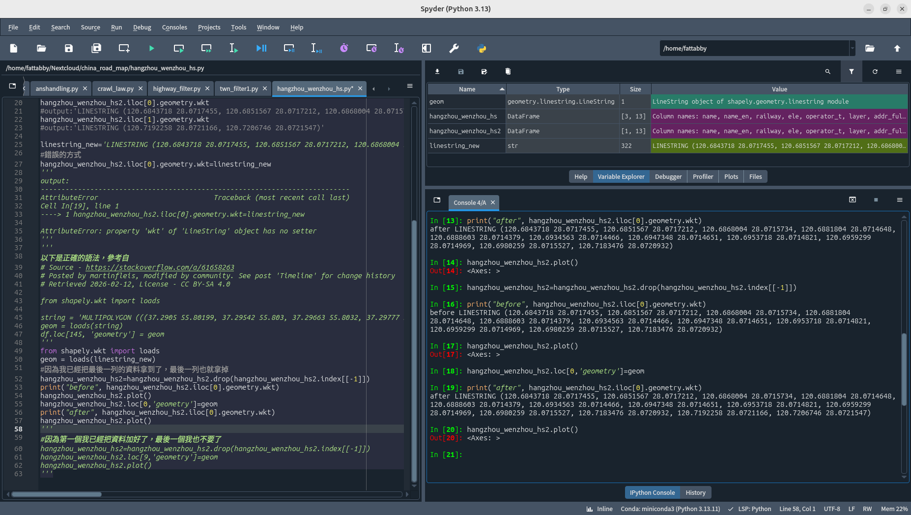 續前篇,既然可以在Python用命令列讀取資料,還有各線段的經緯度座標,那我何不乾脆一起把修正後的座標帶進去?比起在QGIS點放個老半天也比較簡單。