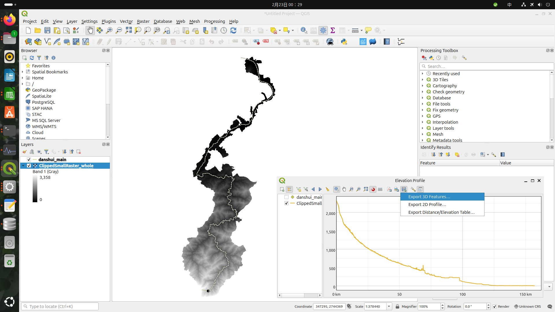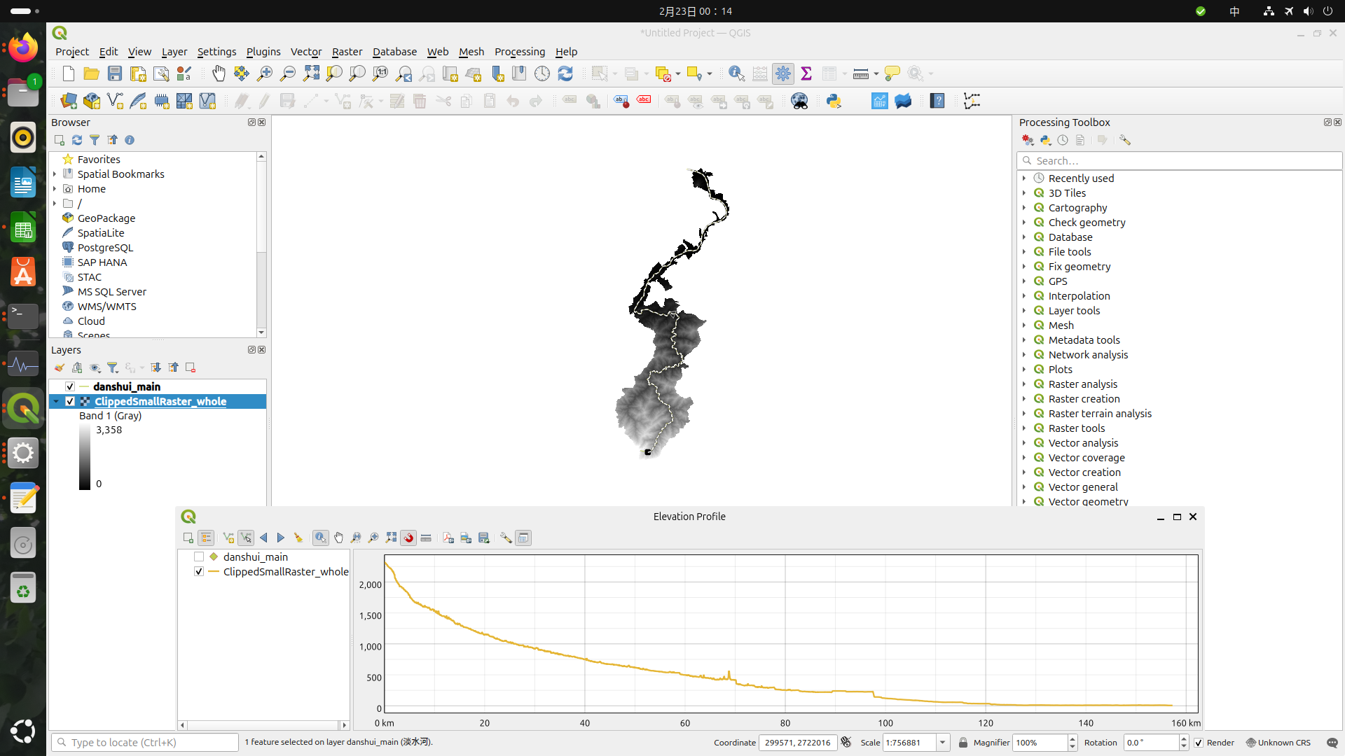 地理資訊系統其中一個有趣的應用,就是取得各路段的高度表。這種高度表在爬山、修築鐵公路時非常重要。雖然這次文章的標題叫做路段,但我想用在自然地理上的另一個地方,即河川(從源頭)到入海口大致的高度表。這在水利資源開發,例如航道規劃、水庫設計都有他的工程需求。